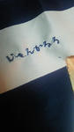 布の裁断が終わって、さて縫うぞっ♪とミシンを前にしたら、何故かふと刺繍機能があることを思い出して、ちょっとした出来心でハギレにひらがな刺繍をしてみたら…
