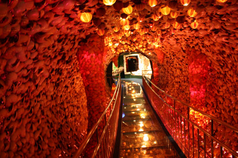 ワクワクしながら中に入ると…目の前に広がるは、凄まじい量の貝がらで造られた意味不明(ファンタジーを表現しているらしいw)な世界!!
