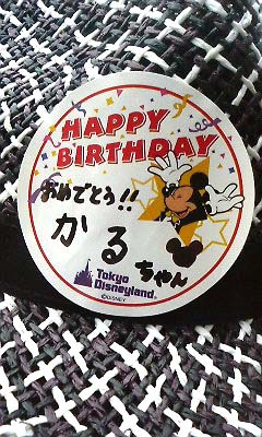 帽子に誕生日主張シール貼り付けて、晒し者☆(笑)