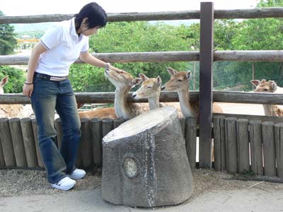 作り物のようなシカ達。えさ持ってる人に、尋常じゃない数が群がってたよ(笑)