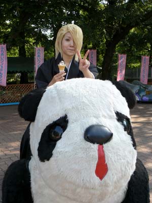 ソフトクリームを片手にパンダちゃんに乗るイヅたんvv